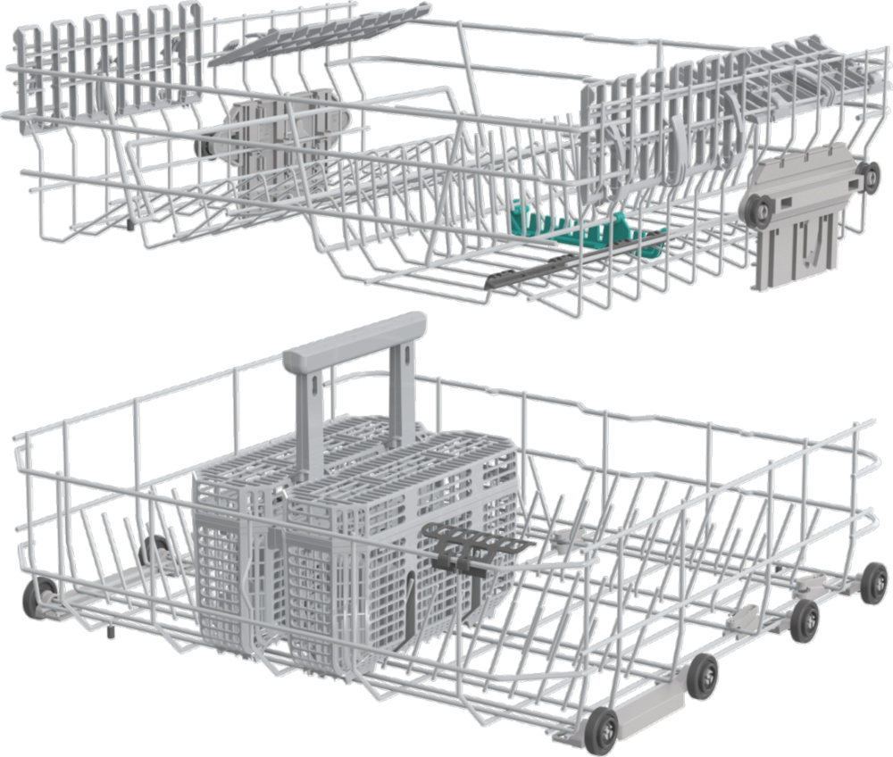 i В стандартной посудомоечной машине 3 корзины — 2 для посуды и 1 для столовых приборов. Современные модели могут иметь от 1 до 4 корзин.