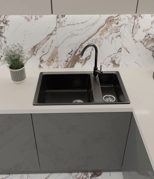 GranFest LEVEL GF-LV-760K, мойка, мрамор, черный