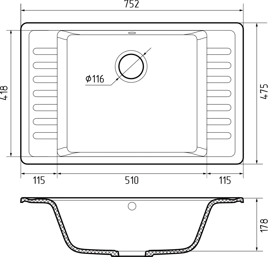 i Основной материал, из которого изготовлен корпус кухонной мойки или смесителя.