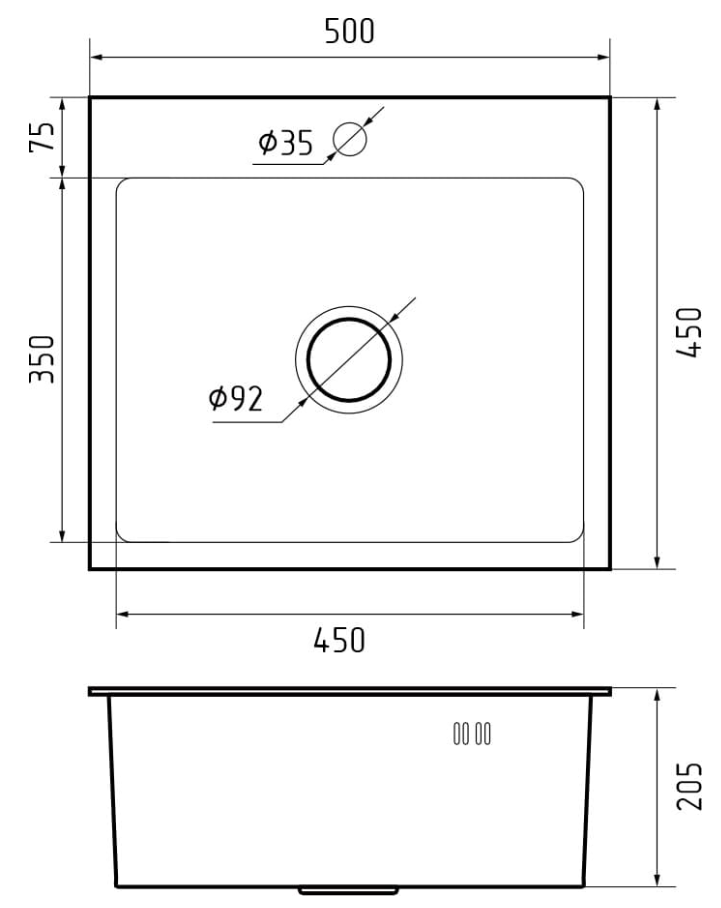 i Расстояние от дна до верхней кромки чаши мойки. Оптимальная глубина — 15-18 см. Чем глубже мойка, тем меньше брызг попадет наружу.