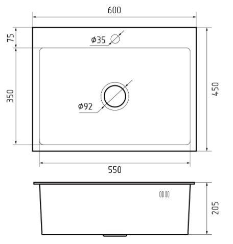 i Расстояние от дна до верхней кромки чаши мойки. Оптимальная глубина — 15-18 см. Чем глубже мойка, тем меньше брызг попадет наружу.