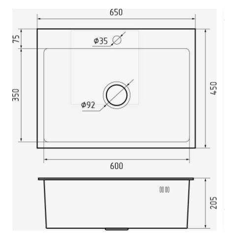 i Расстояние от дна до верхней кромки чаши мойки. Оптимальная глубина — 15-18 см. Чем глубже мойка, тем меньше брызг попадет наружу.