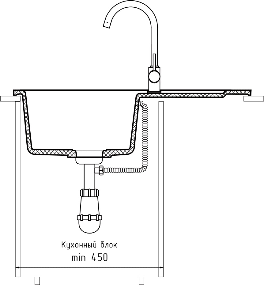 i Расстояние от дна до верхней кромки чаши мойки. Оптимальная глубина — 15-18 см. Чем глубже мойка, тем меньше брызг попадет наружу.