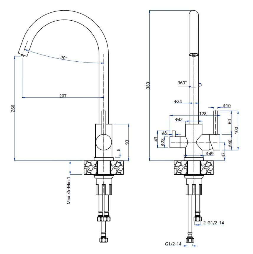 GranFest GF-Z-5420, смеситель, нержавеющая сталь