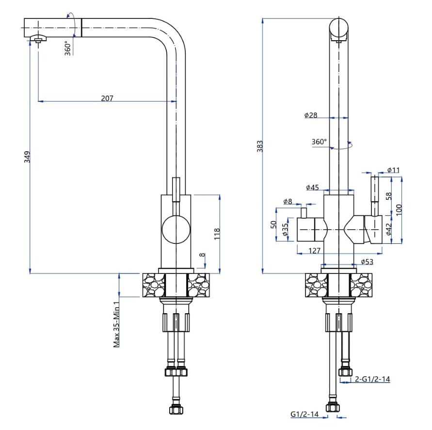 GranFest GF-Z-5421, смеситель, нержавеющая сталь