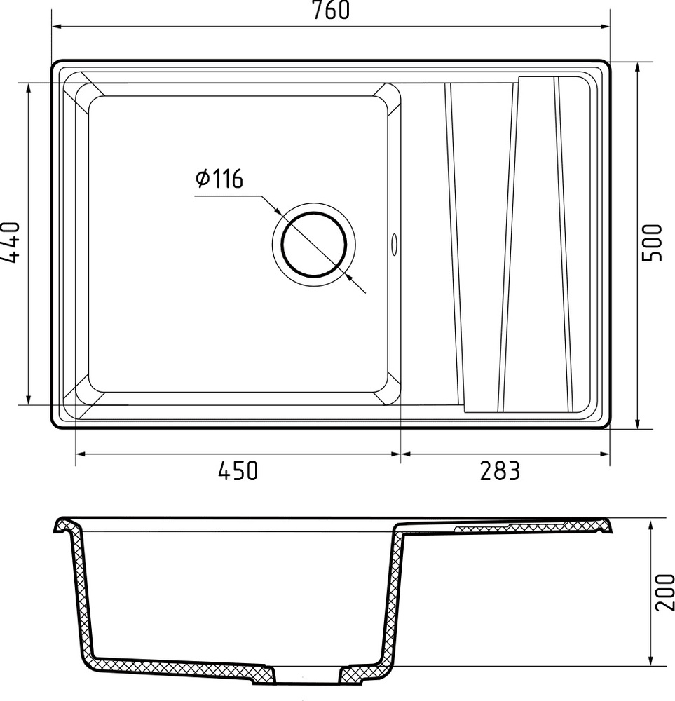Мойка для кухни GranFest Композит LEVEL 760L |
