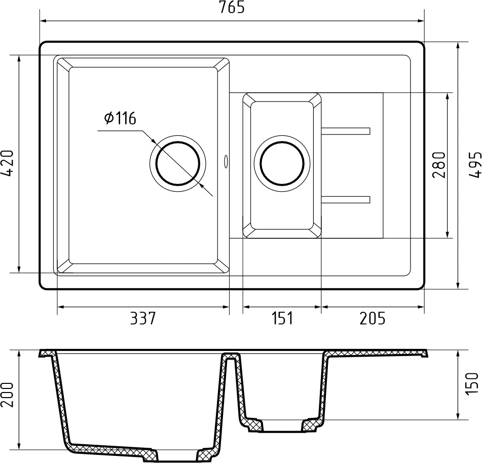 Мойка для кухни GranFest Композит QUADRO 775KL |