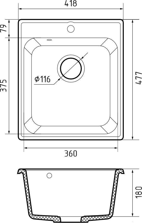 i Расстояние от дна до верхней кромки чаши мойки. Оптимальная глубина — 15-18 см. Чем глубже мойка, тем меньше брызг попадет наружу.