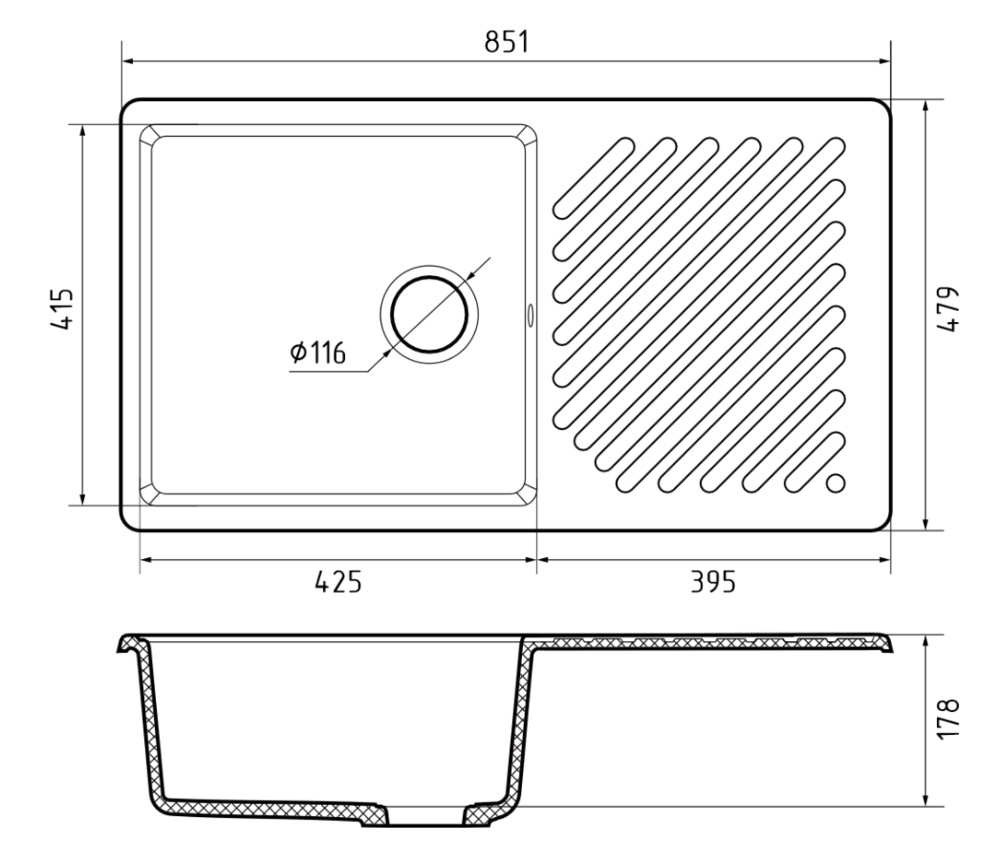 i Наличие и расположение крыла кухонной мойки — слева, справа или с обеих сторон. Крыло оборачиваемой мойки можно расположить с любой стороны.