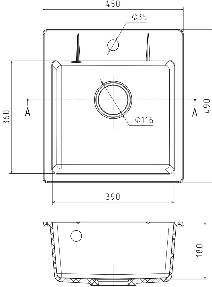 i Расстояние от дна до верхней кромки чаши мойки. Оптимальная глубина — 15-18 см. Чем глубже мойка, тем меньше брызг попадет наружу.