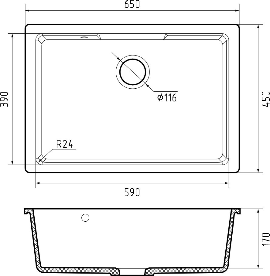 i Основной материал, из которого изготовлен корпус кухонной мойки или смесителя.