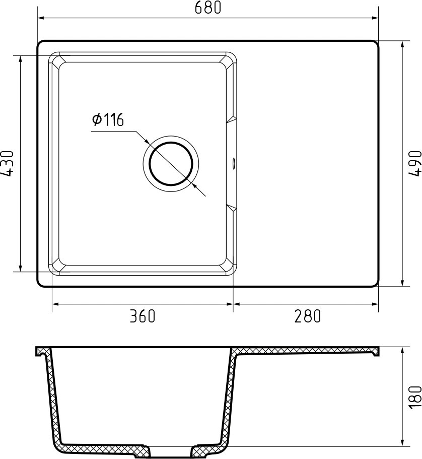 i Расстояние от дна до верхней кромки чаши мойки. Оптимальная глубина — 15-18 см. Чем глубже мойка, тем меньше брызг попадет наружу.