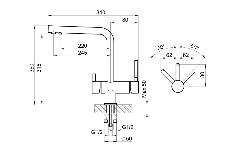 i Встроенная в кран насадка на длинном гибком шланге с металлической оплеткой. Насадки с кнопкой могут переключать обычный излив воды на душ.