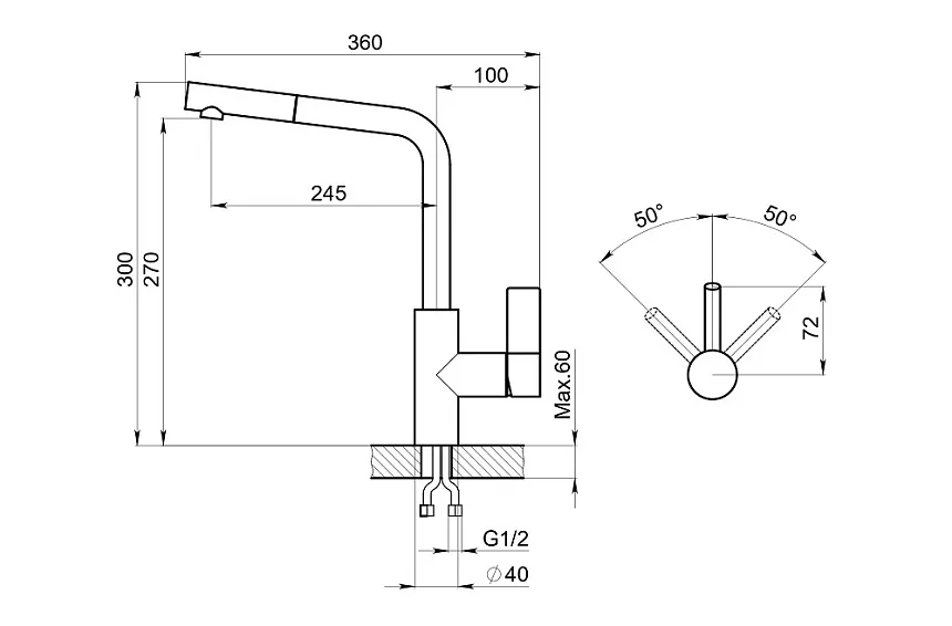 i Встроенная в кран насадка на длинном гибком шланге с металлической оплеткой. Насадки с кнопкой могут переключать обычный излив воды на душ.