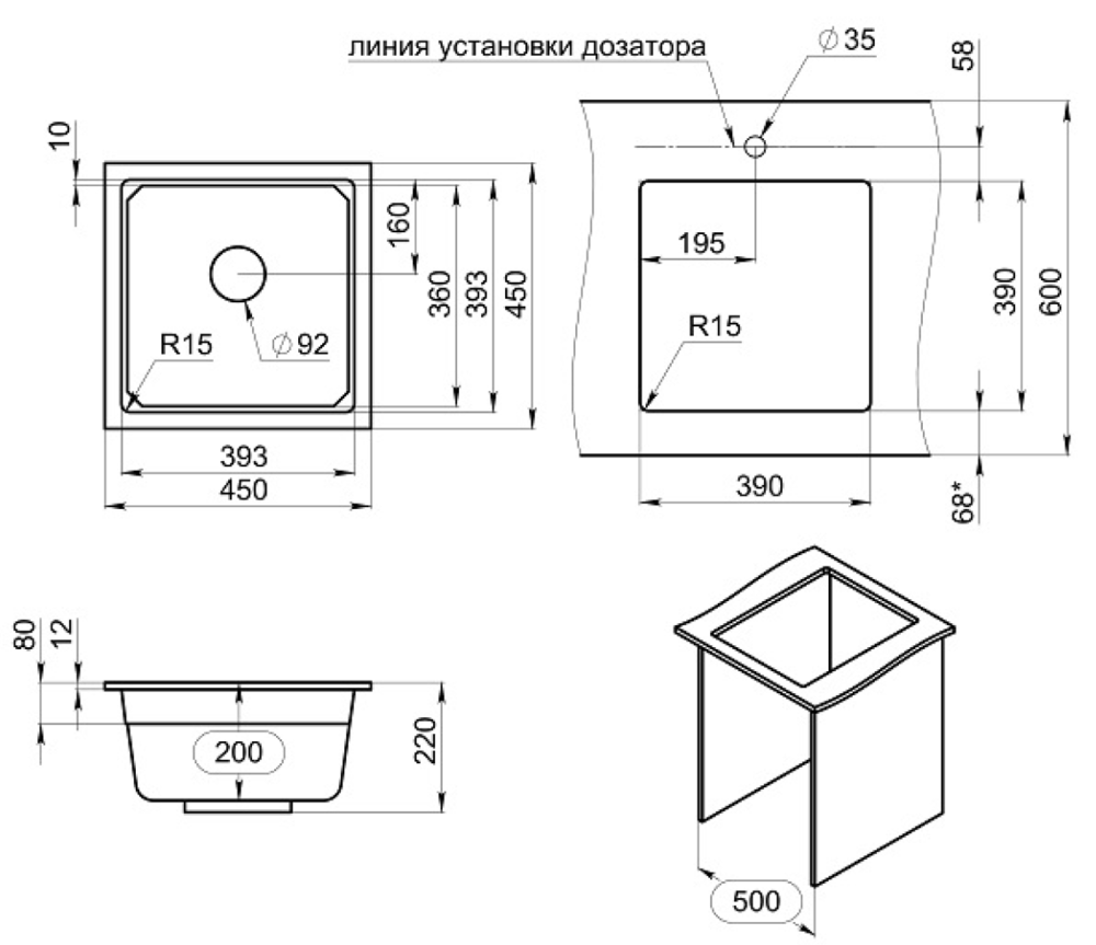 i Расстояние от дна до верхней кромки чаши мойки. Оптимальная глубина — 15-18 см. Чем глубже мойка, тем меньше брызг попадет наружу.