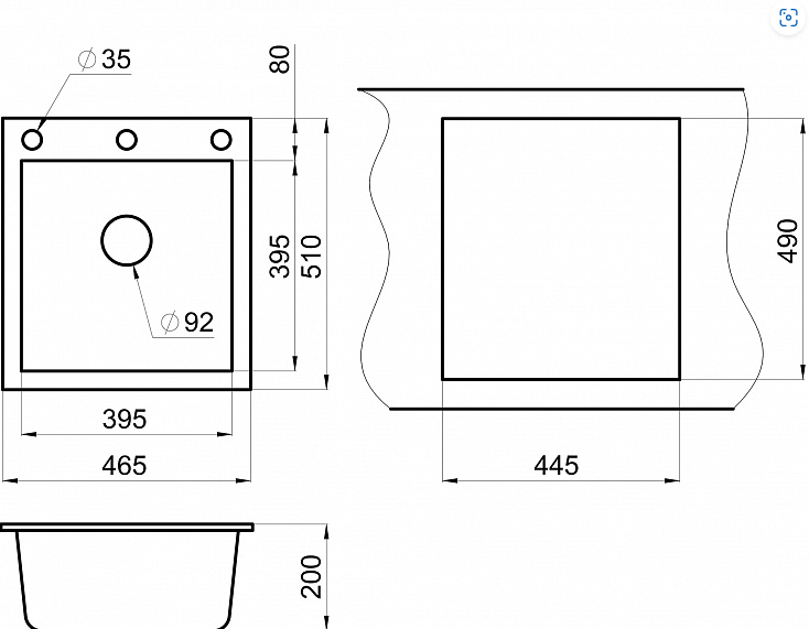 i Расстояние от дна до верхней кромки чаши мойки. Оптимальная глубина — 15-18 см. Чем глубже мойка, тем меньше брызг попадет наружу.