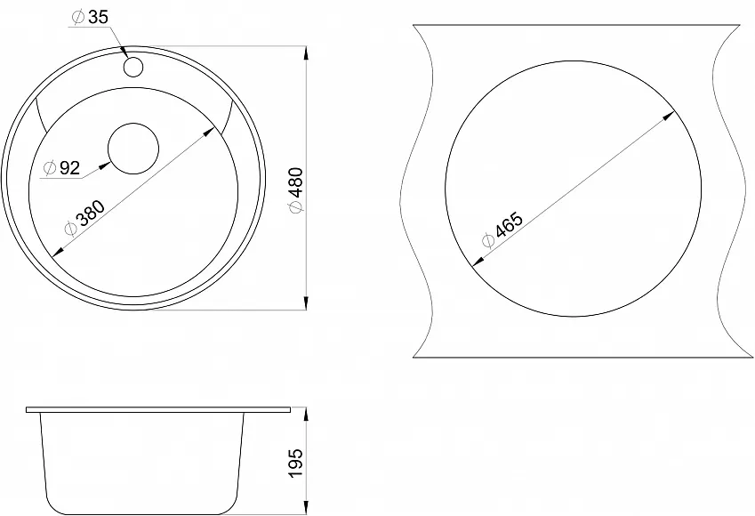 i Расстояние от дна до верхней кромки чаши мойки. Оптимальная глубина — 15-18 см. Чем глубже мойка, тем меньше брызг попадет наружу.