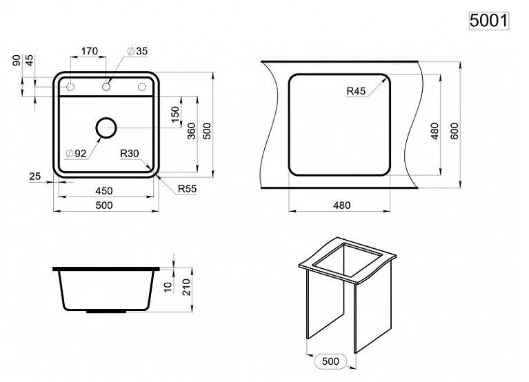 GRANULA 5001 мойка, гранит, базальт