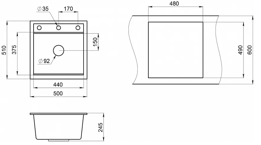 i Расстояние от дна до верхней кромки чаши мойки. Оптимальная глубина — 15-18 см. Чем глубже мойка, тем меньше брызг попадет наружу.