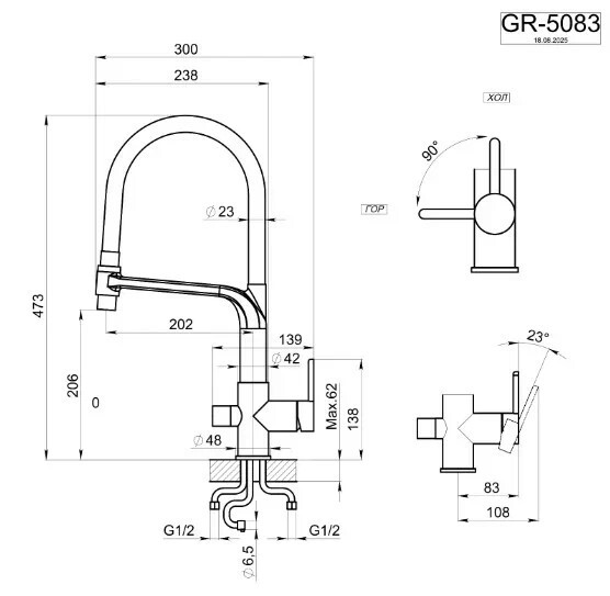 Гибкая подводка (600 мм), комплект креплений, переходник для подключения фильтра с питьевой водой |