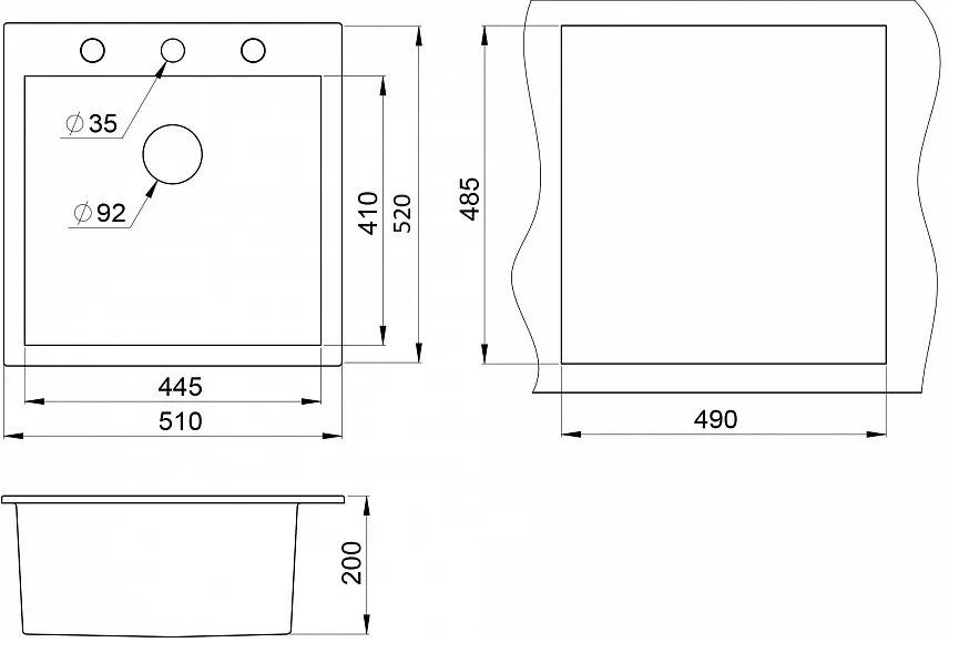 i Расстояние от дна до верхней кромки чаши мойки. Оптимальная глубина — 15-18 см. Чем глубже мойка, тем меньше брызг попадет наружу.