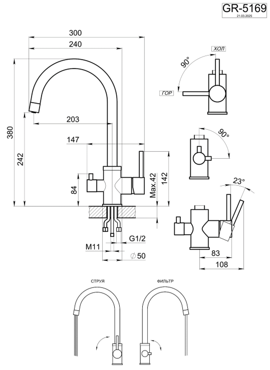 Гибкая подводка, комплект креплений, переходник для подключения фильтра с пиьевой водой |