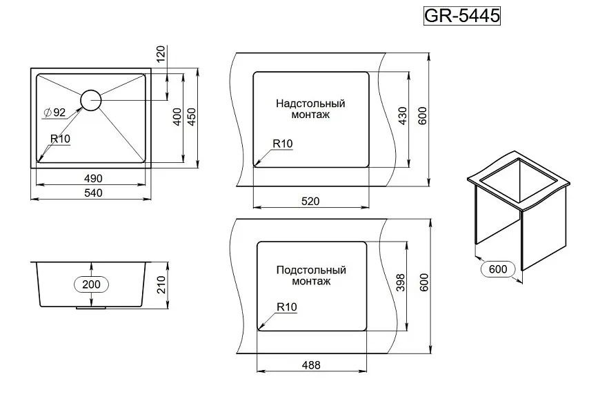 GRANULA 5445U, мойка, нержавеющая сталь, сталь сатин