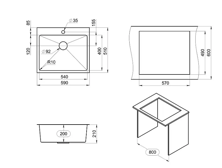 GRANULA 5951 мойка, нержавеющая сталь, графит матовый