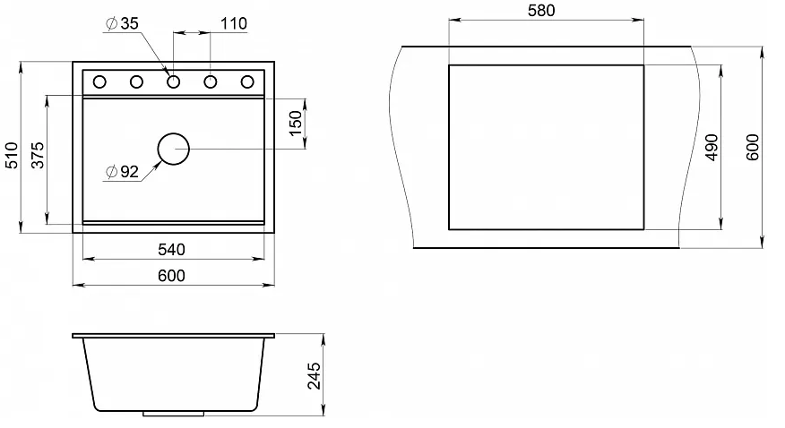 i Расстояние от дна до верхней кромки чаши мойки. Оптимальная глубина — 15-18 см. Чем глубже мойка, тем меньше брызг попадет наружу.