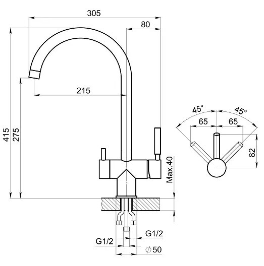 Гибкая подводка (600 мм), комплект креплений, переходник для подключения фильтра с питьевой водой |