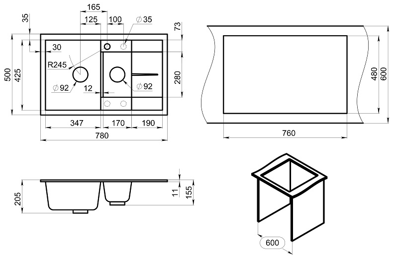 i Наличие и расположение крыла кухонной мойки — слева, справа или с обеих сторон. Крыло оборачиваемой мойки можно расположить с любой стороны.