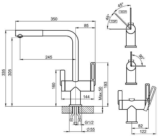 Гибкая подводка, комплект креплений, переходник для подключения фильтра с питьевой водой |