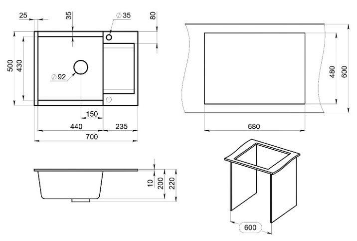 i Наличие и расположение крыла кухонной мойки — слева, справа или с обеих сторон. Крыло оборачиваемой мойки можно расположить с любой стороны.