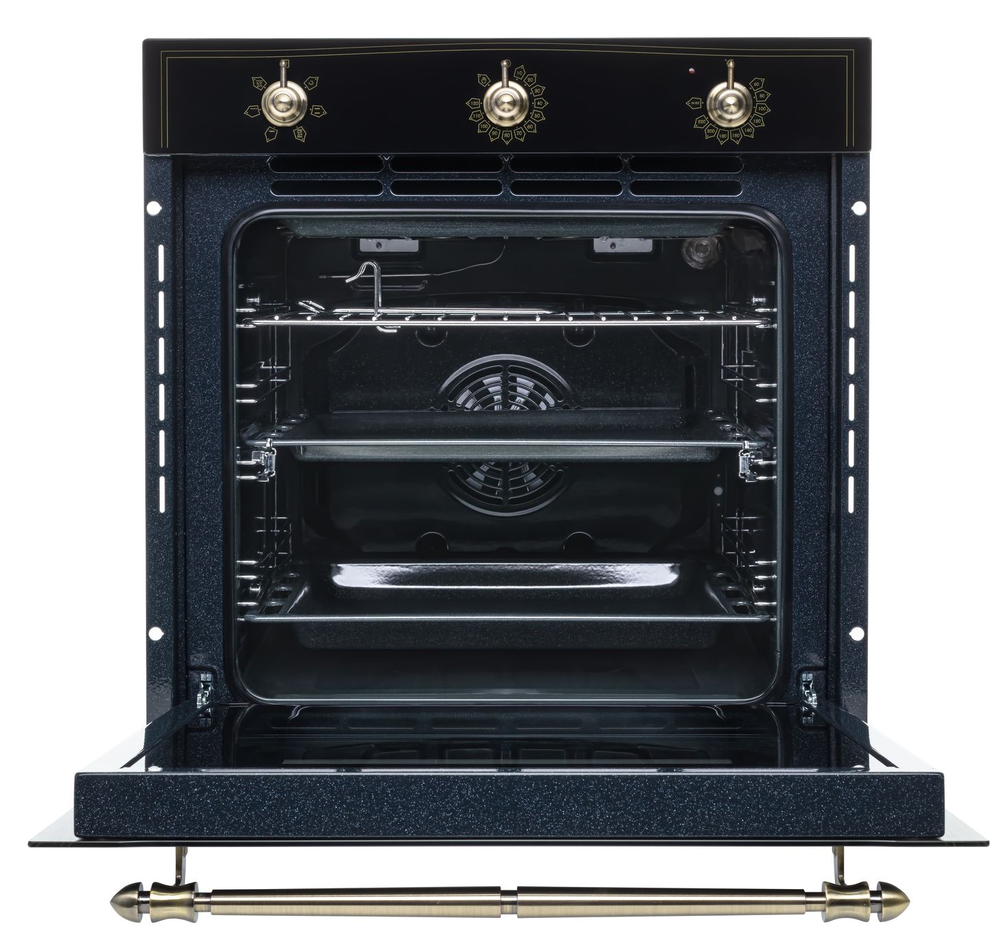 i Предполагает наличие встроенного вентилятора, который обеспечивает равномерное запекание благодаря непрерывной циркуляции горячего воздуха.