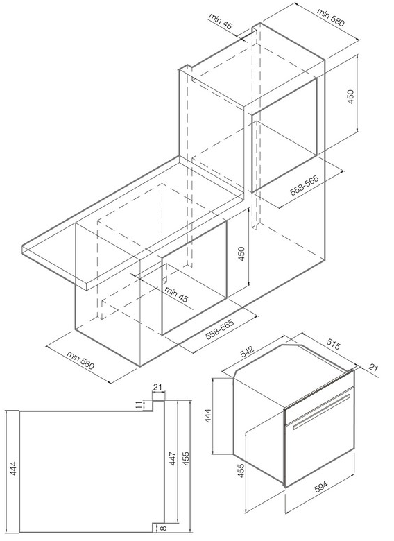 i Высота электроприбора. Подбирайте технику, учитывая стиль помещения, высоту кухонного гарнитура (до 2,5 м) и столешницы (ок. 90 см).
