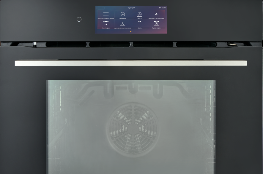 i Предполагает наличие встроенного вентилятора, который обеспечивает равномерное запекание благодаря непрерывной циркуляции горячего воздуха.