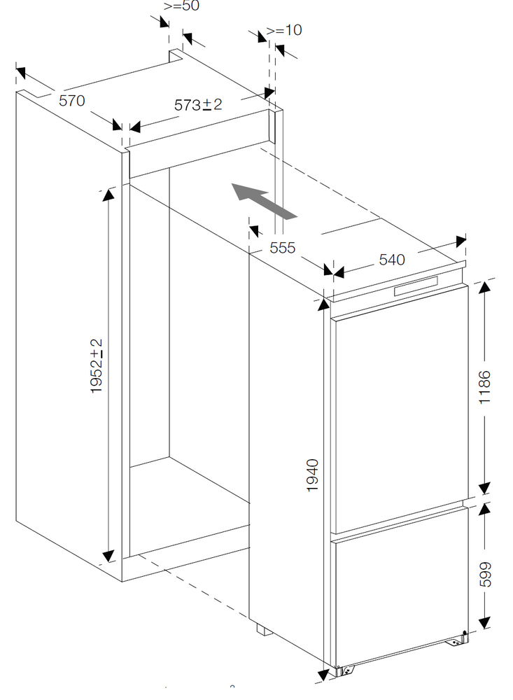 Graude IKG 190.1 двухкамерный холодильник встраиваемый