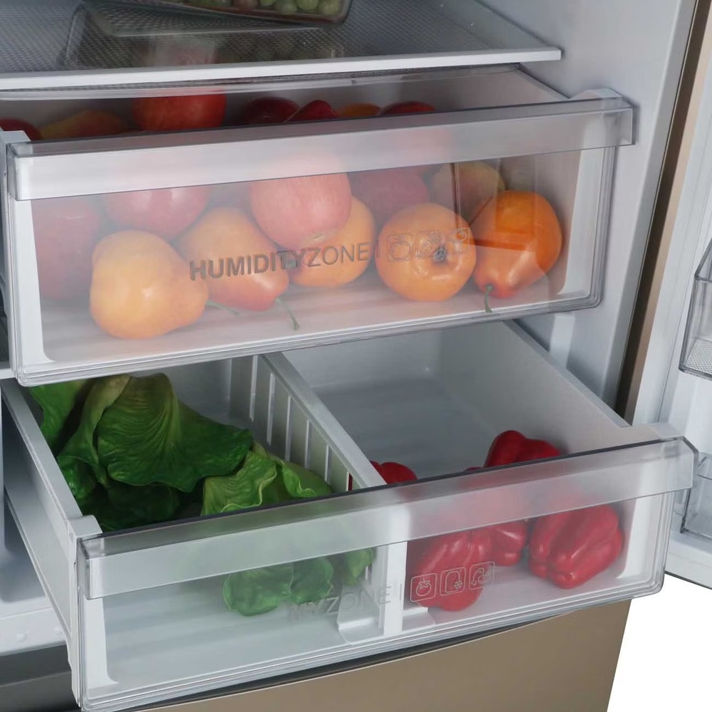 i В зоне свежести температура держится на уровне 0°С, так продукты дольше остаются свежими. Подходит для свежего мяса, рыбы, фруктов, овощей.