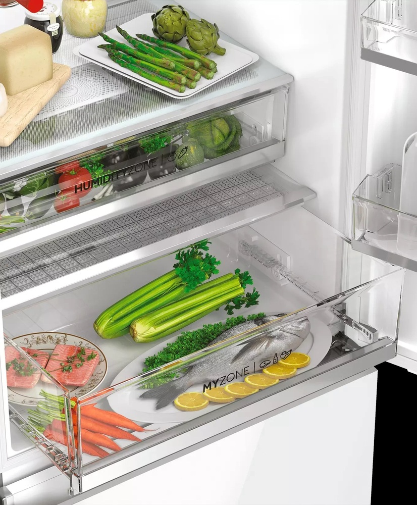 i В зоне свежести температура держится на уровне 0°С, так продукты дольше остаются свежими. Подходит для свежего мяса, рыбы, фруктов, овощей.