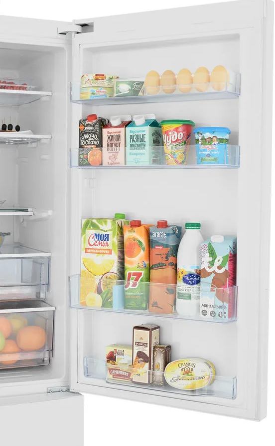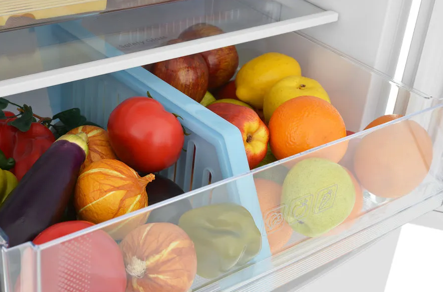 i В зоне свежести температура держится на уровне 0°С, так продукты дольше остаются свежими. Подходит для свежего мяса, рыбы, фруктов, овощей.