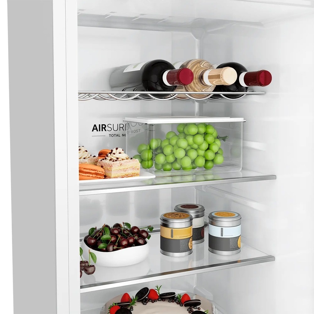 i В зоне свежести температура держится на уровне 0°С, так продукты дольше остаются свежими. Подходит для свежего мяса, рыбы, фруктов, овощей.
