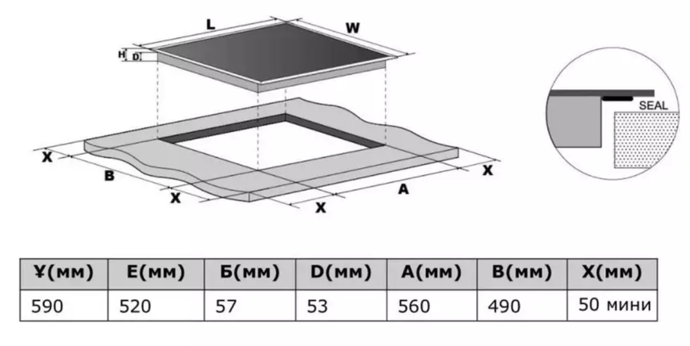 i Ширина корпуса электроприбора. Особенно важно точно знать точную допустимую ширину для встраиваемой техники.