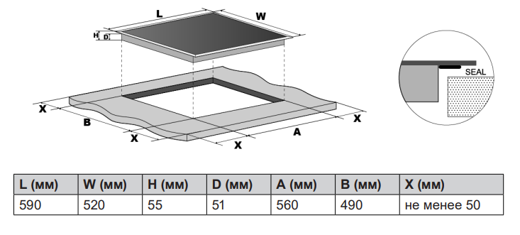 i Ширина корпуса электроприбора. Особенно важно точно знать точную допустимую ширину для встраиваемой техники.