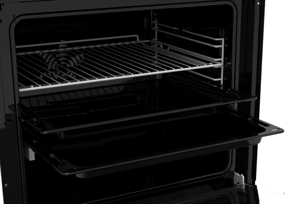 i Выдвижные металлические полозья, которые легко выезжают за пределы камеры духовки вместе с противнем, не давая ему упасть.