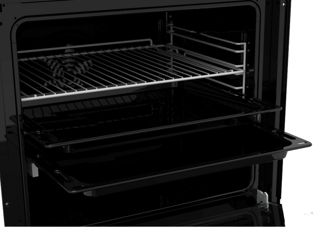 i Выдвижные металлические полозья, которые легко выезжают за пределы камеры духовки вместе с противнем, не давая ему упасть.