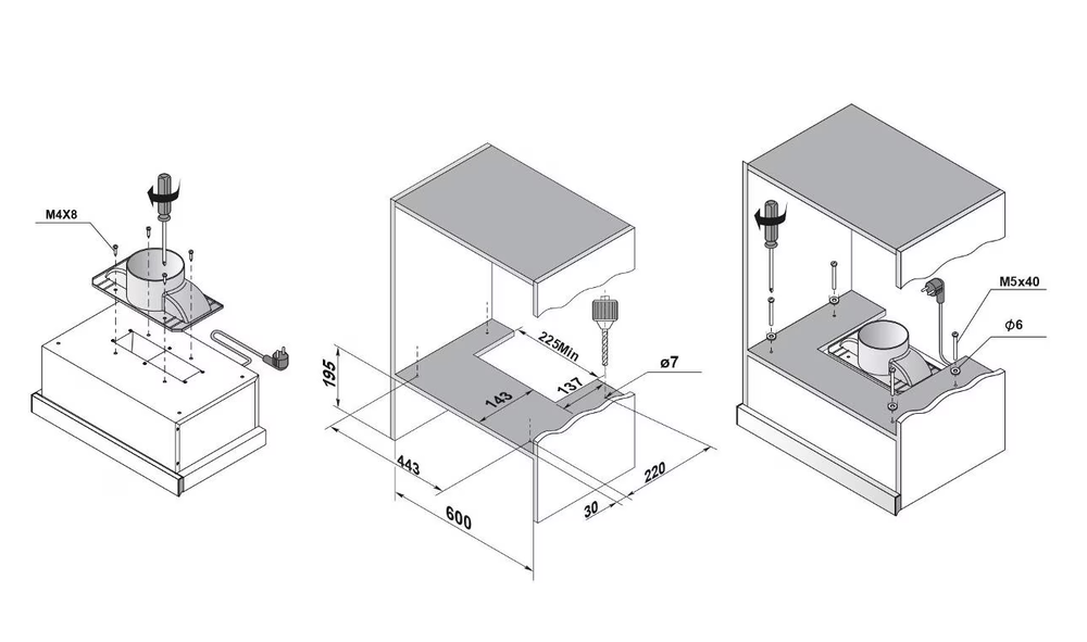 i В зависимости от расположения существует несколько типов установки кухонных вытяжек: встраиваемые, стандартные, пристенные, островные и др.