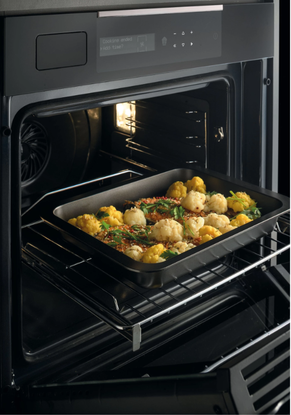 i Функция позволяет использовать духовой шкаф, как полноценную пароварку. Вода добавляется в специальную емкость и преобразуется в пар.