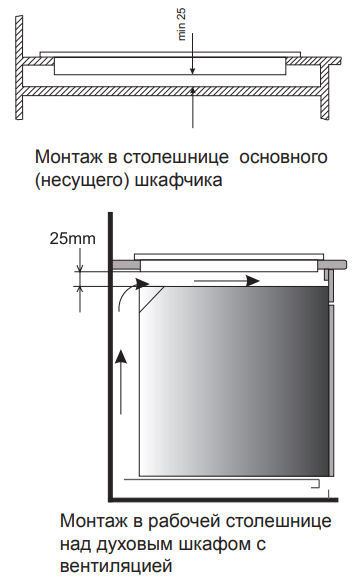 i Характер огранки фаски на внешней стороне варочной панели. Металлические рамки предотвращают забивание монтажных швов крошками и пылью.