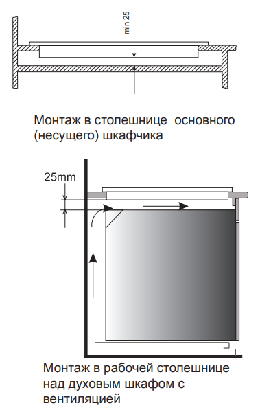 i Характер огранки фаски на внешней стороне варочной панели. Металлические рамки предотвращают забивание монтажных швов крошками и пылью.