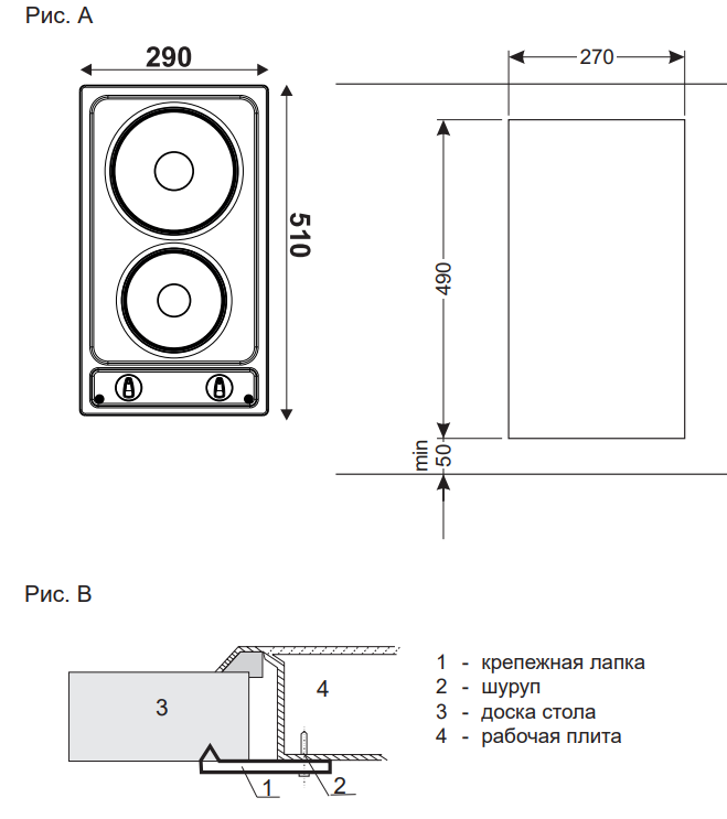 Высота варочной поверхности, мм